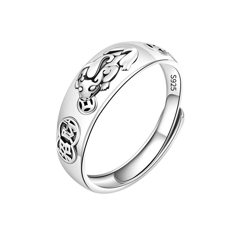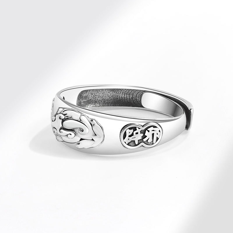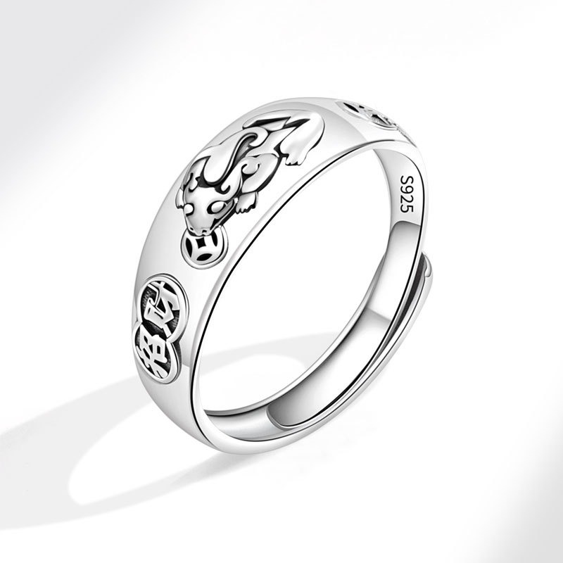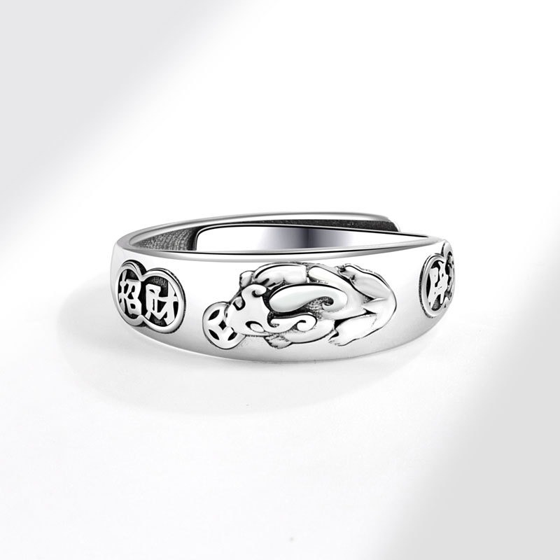 S925 sterling silver ring opening adjustable embossed Pixiu women’s ring