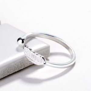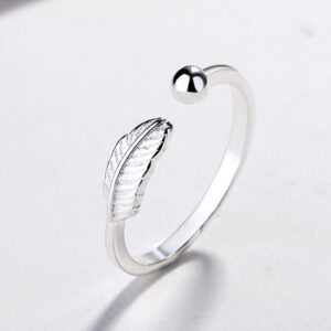S925 Sterling Silver Ring Opening Adjustable Feather Ring for Women