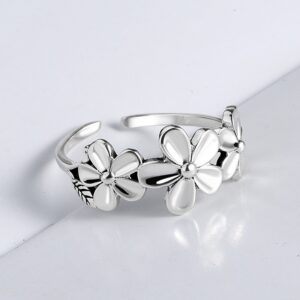 S925 Sterling Silver Ring Opening Adjustable Flower Ring Ring for Women