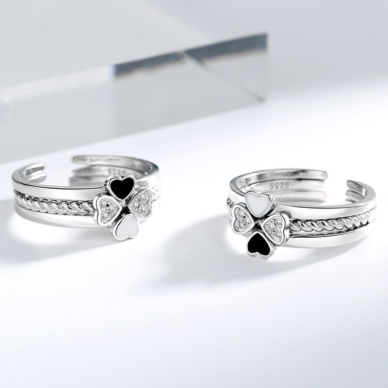 S925 sterling silver ring opening adjustable four-leaf clover ring for women quantity