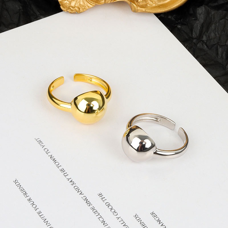 S925 sterling silver ring opening adjustable geometric bead ring for women
