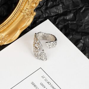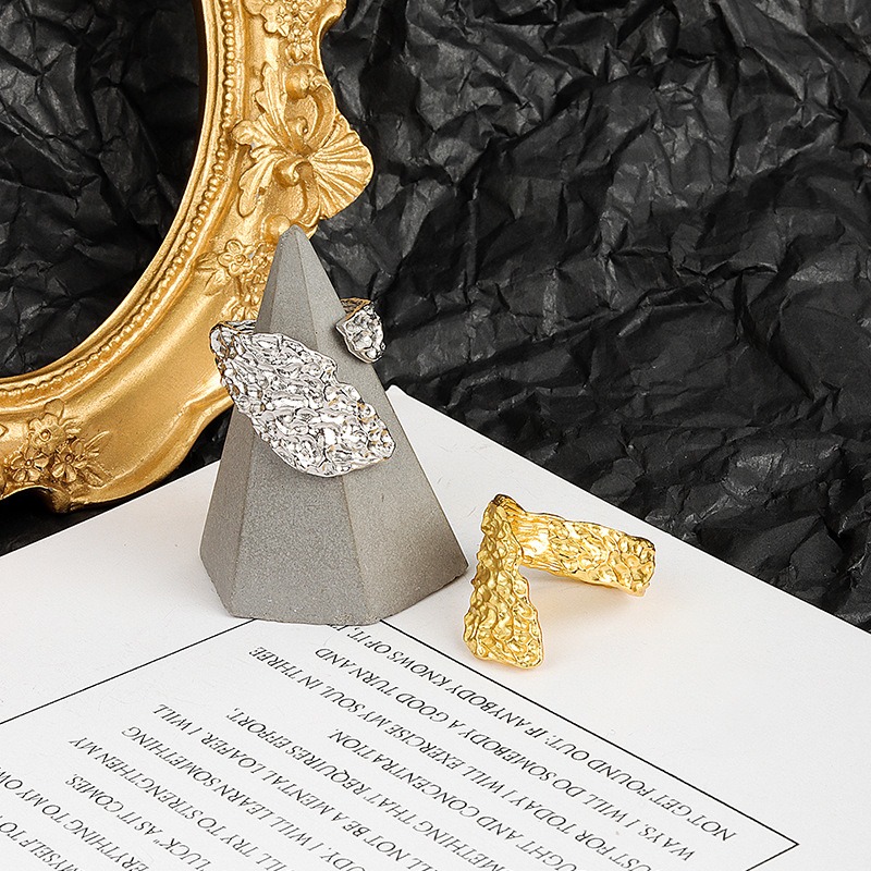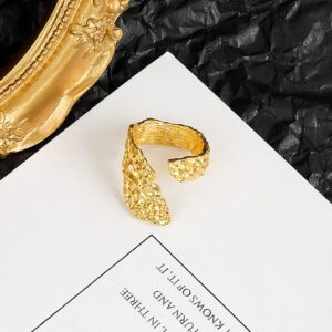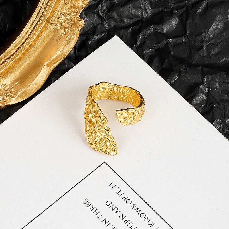 S925 sterling silver ring opening adjustable gold foil women’s ring