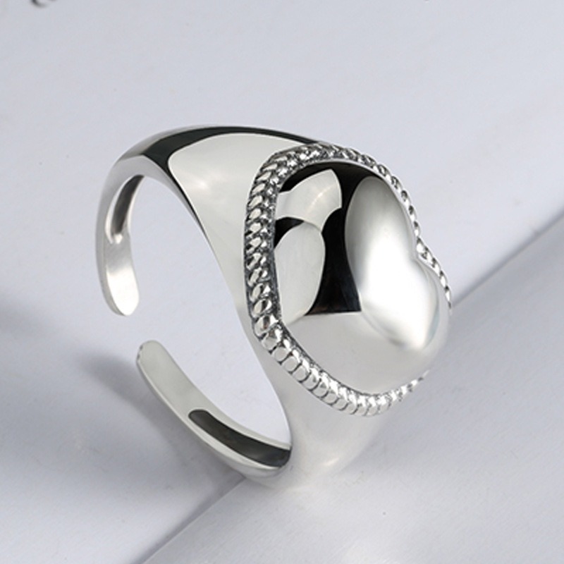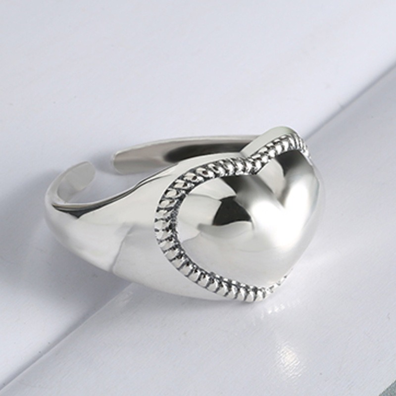 S925 sterling silver ring opening adjustable heart shape women’s ring