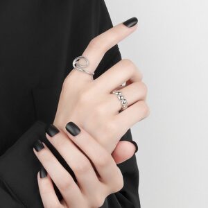 S925 sterling silver ring opening adjustable geometric bead ring for women