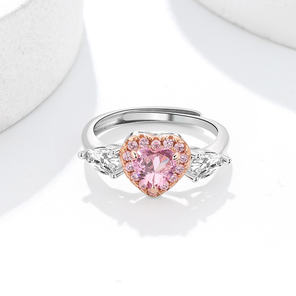 S925 sterling silver ring opening adjustable heart shape women’s ring