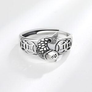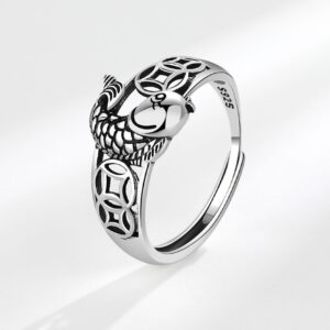 S925 Sterling Silver Ring Opening Adjustable Koi Copper Coin Ring Women’s Ring