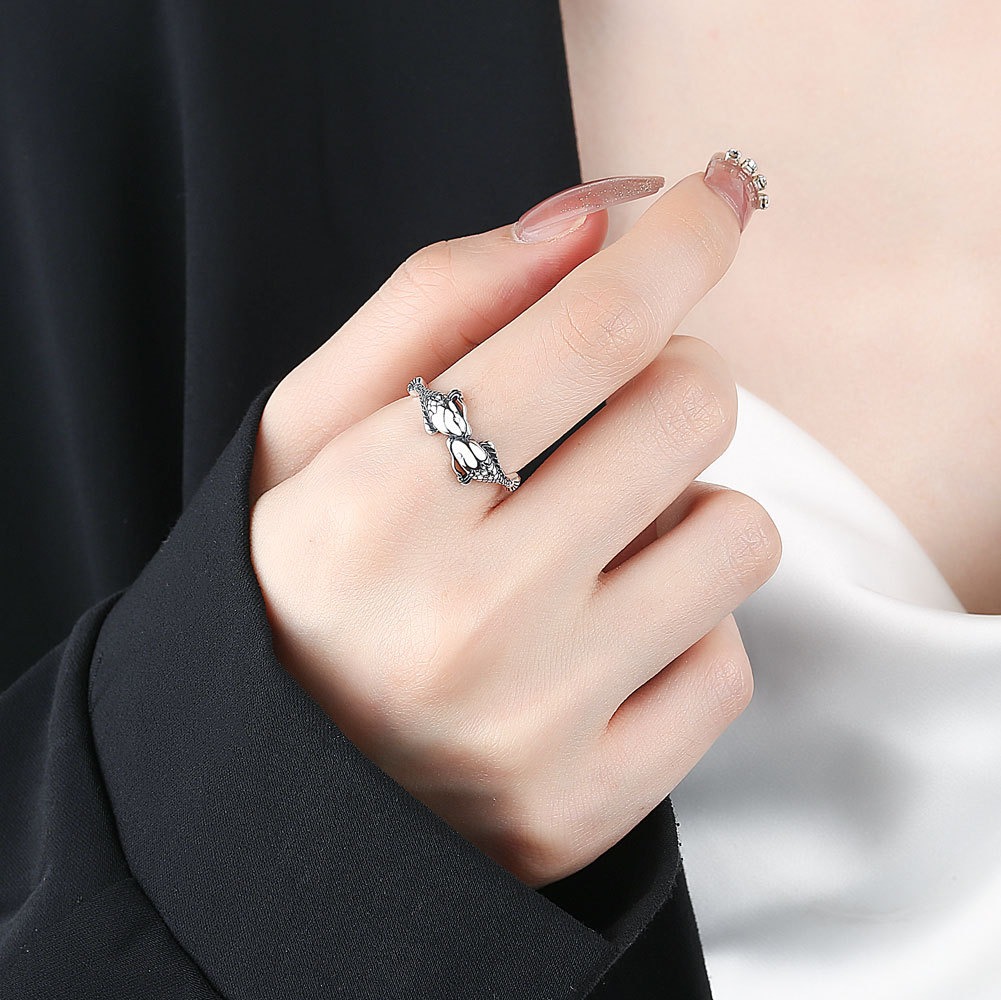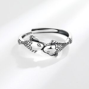 S925 sterling silver ring opening adjustable koi ring for women