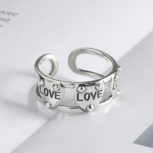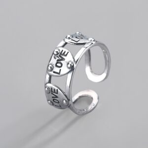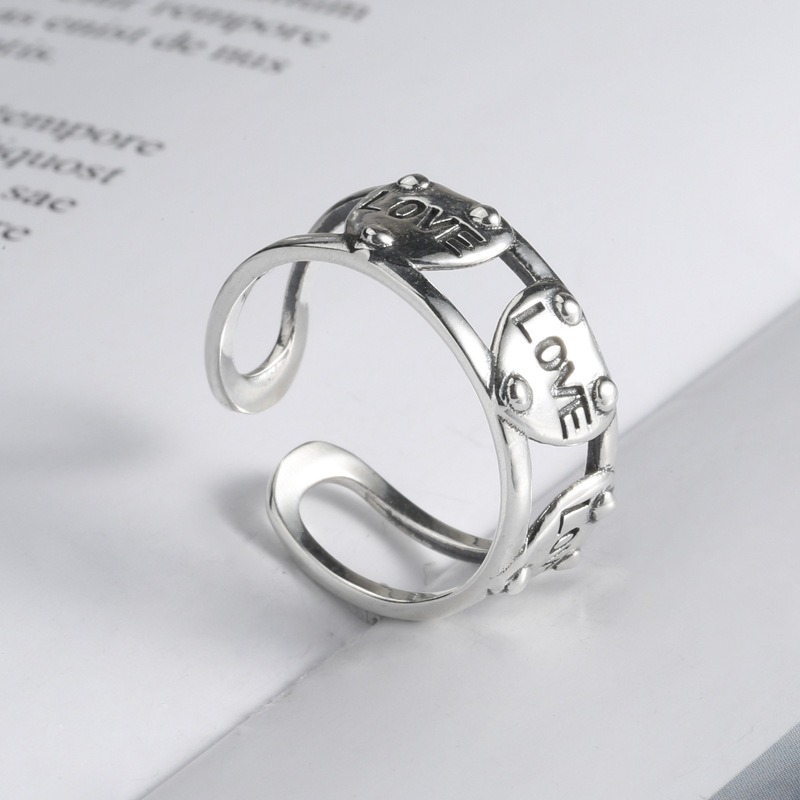 S925 Sterling Silver Ring Opening Adjustable LOVE Ring for Women