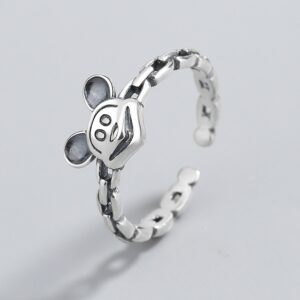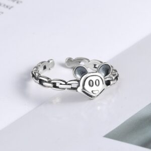S925 sterling silver ring opening adjustable Mickey Mouse ring for women