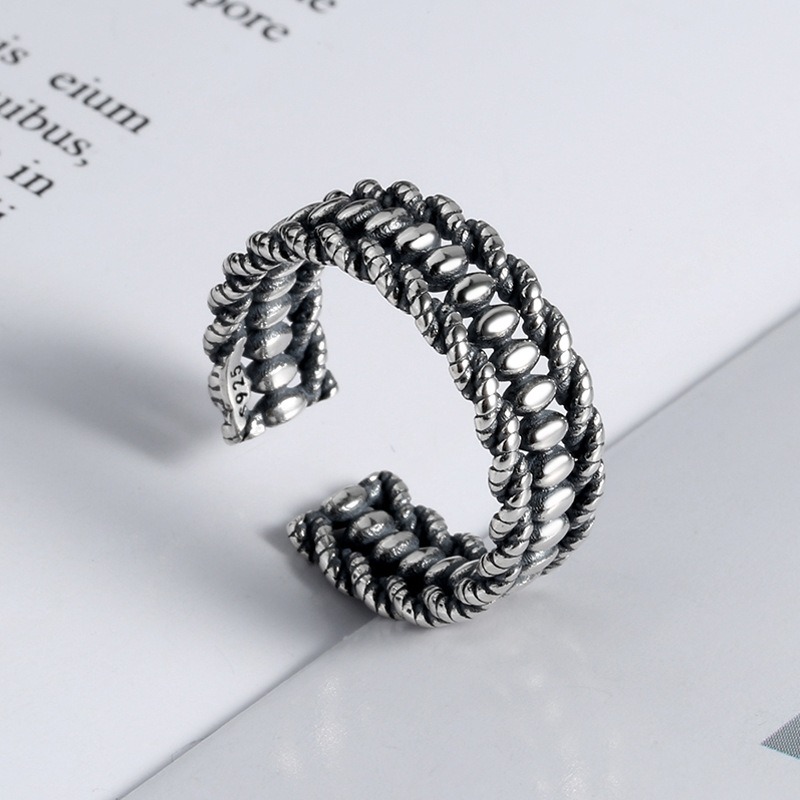 S925 sterling silver ring opening adjustable olive ring