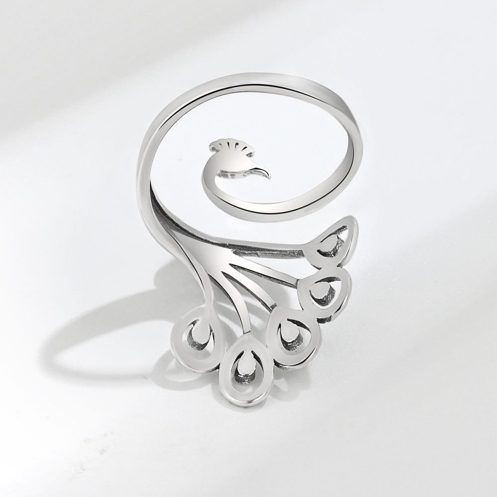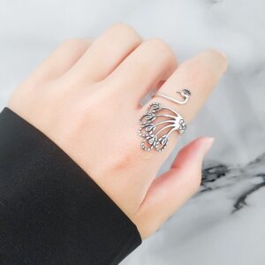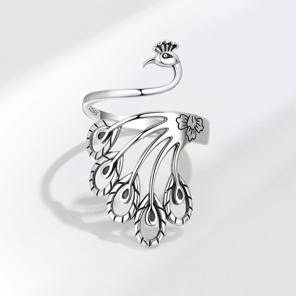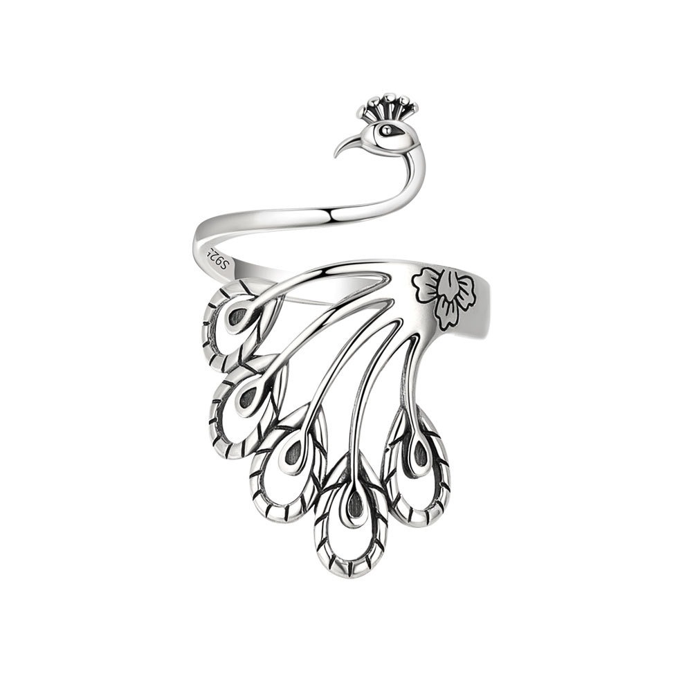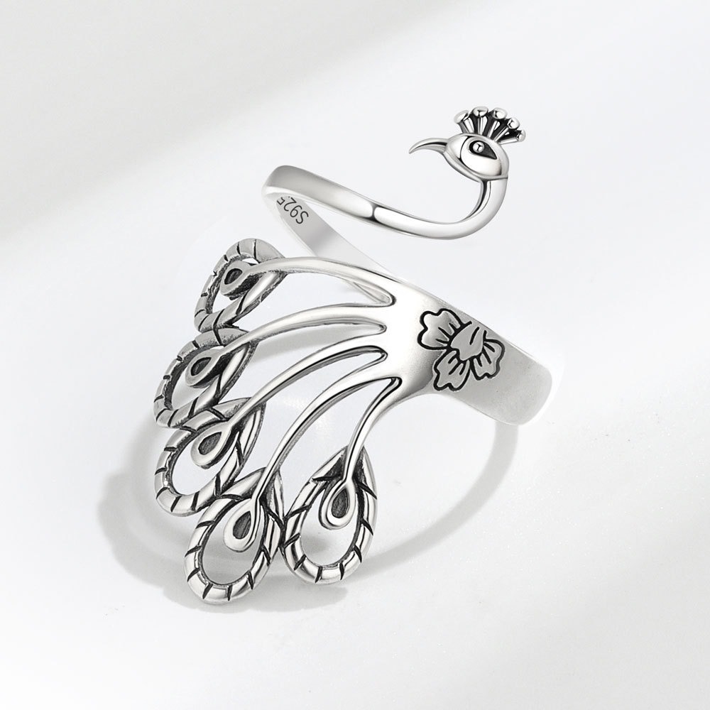 S925 sterling silver ring opening adjustable peacock women’s ring