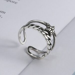 S925 sterling silver ring opening adjustable twist cross ring for women