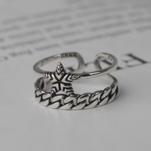 S925 sterling silver ring opening adjustable pentagram chain women’s ring