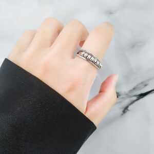 S925 Sterling Silver Ring Opening Adjustable Tin Foil Texture Ladies Ring