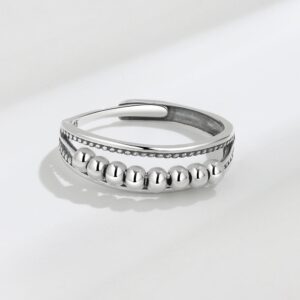 S925 sterling silver ring opening adjustable polka dot beaded women’s ring