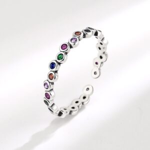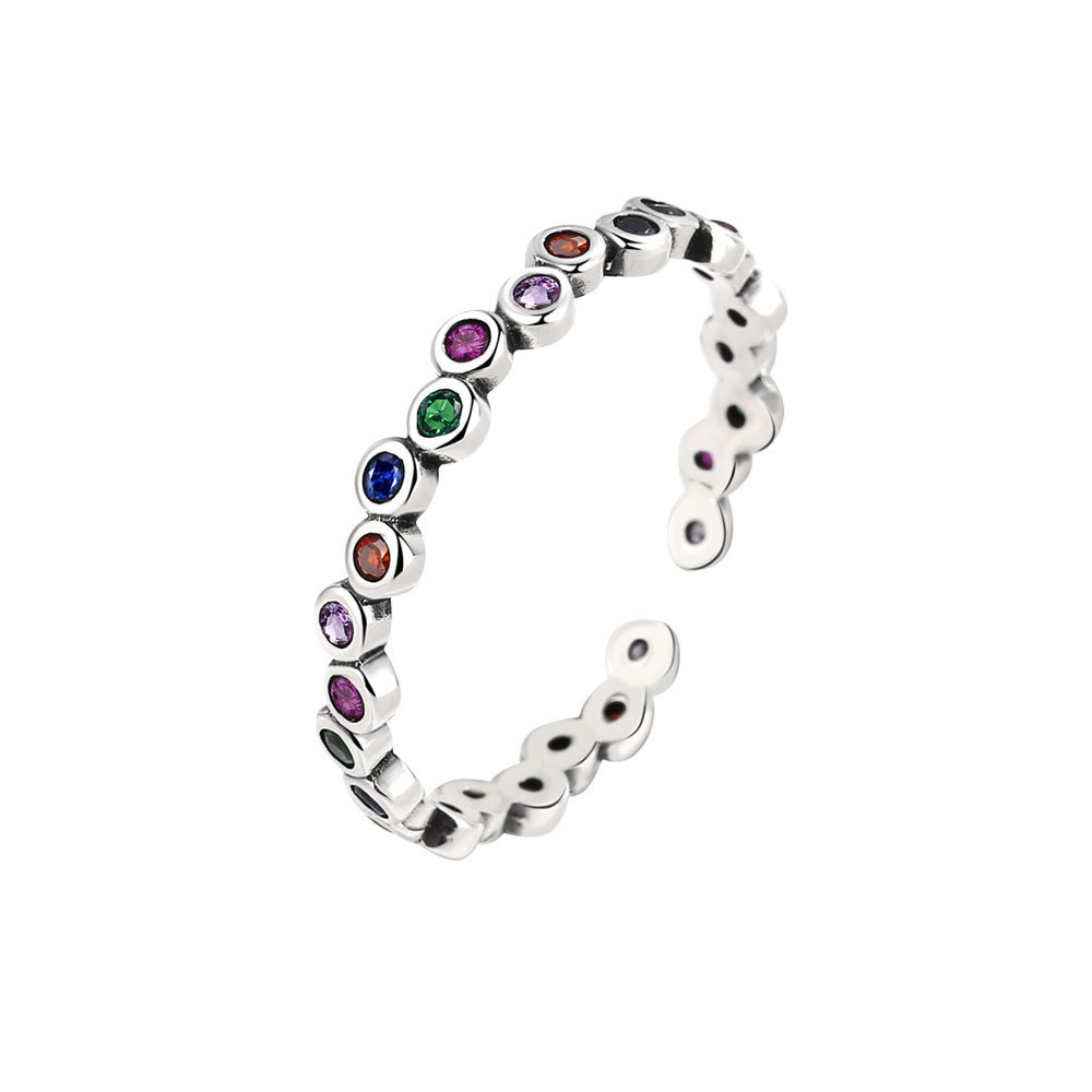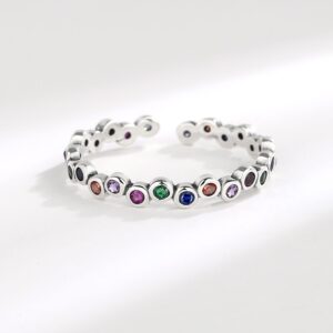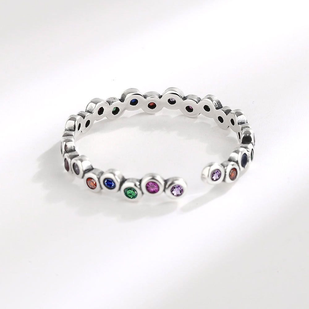 S925 Sterling Silver Ring Opening Adjustable Rainbow Bubble Ring for Women