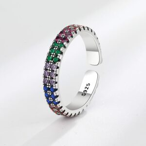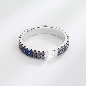 S925 Sterling Silver Ring Opening Adjustable Rainbow Full Diamond Ladies Ring