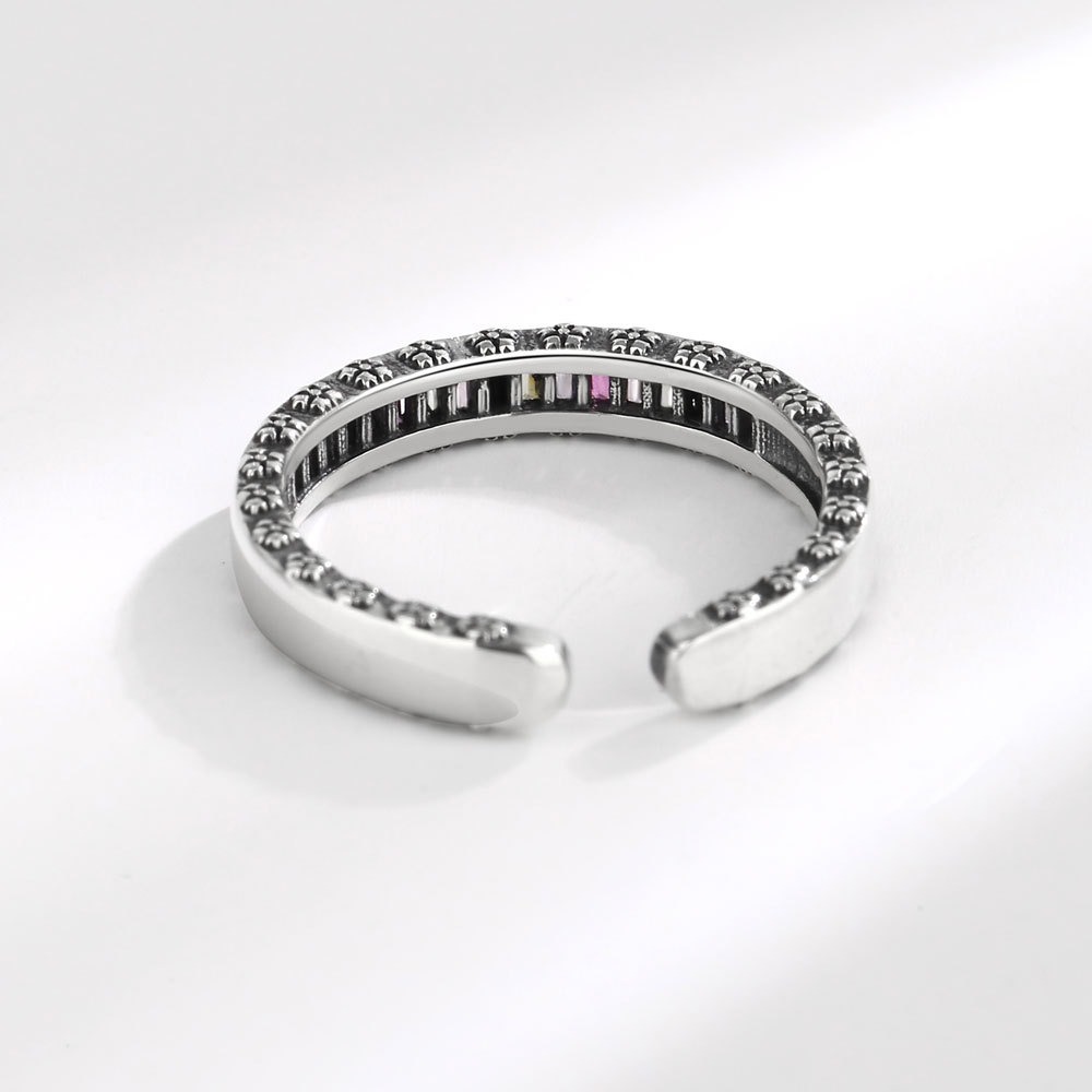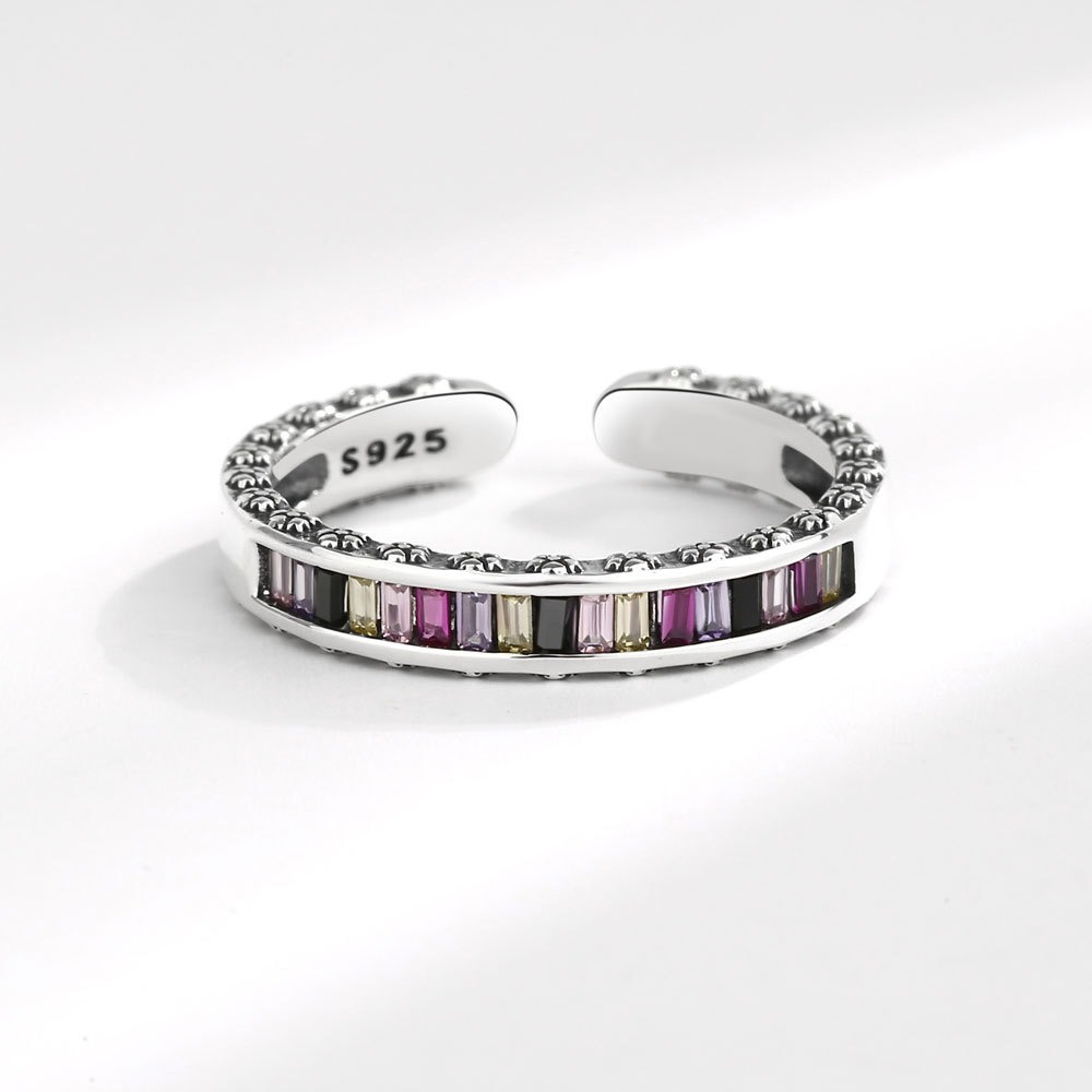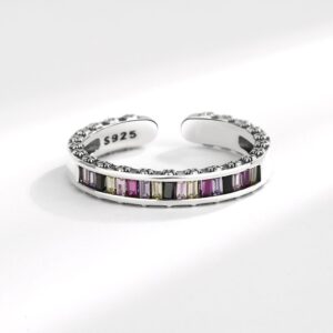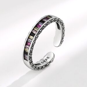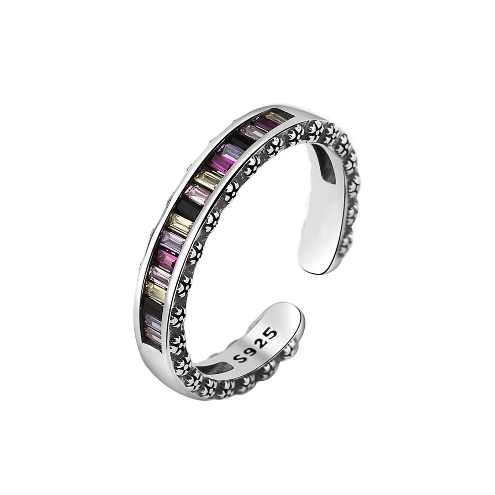 S925 sterling silver ring opening adjustable rainbow zircon women’s ring