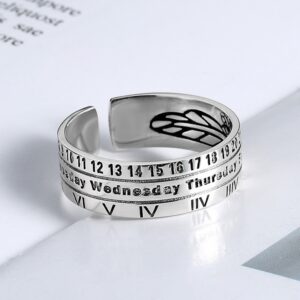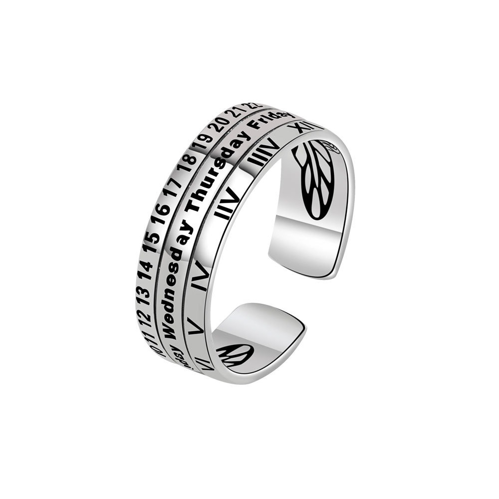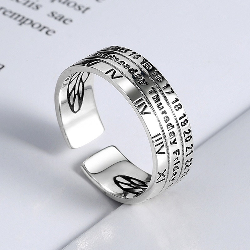 S925 Sterling Silver Ring Opening Adjustable Roman Numeral Ring for Women