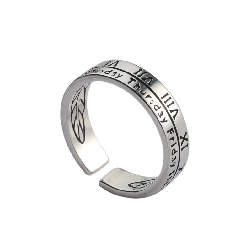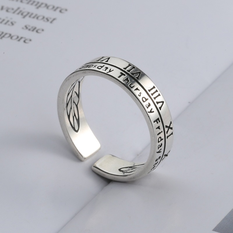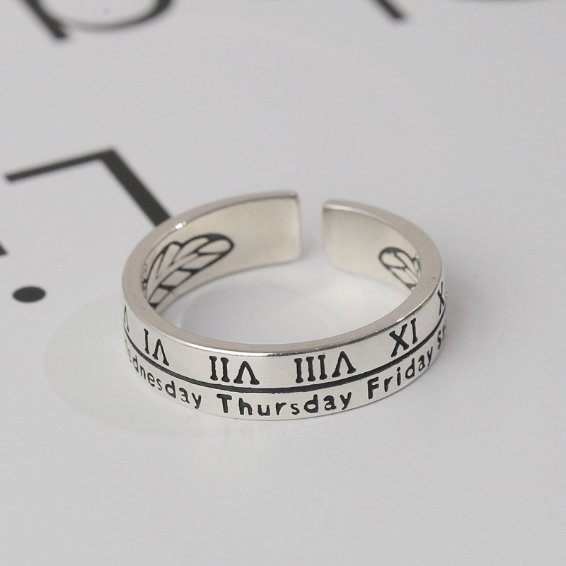 S925 Sterling Silver Ring Opening Adjustable Roman Numeral Ring for Women