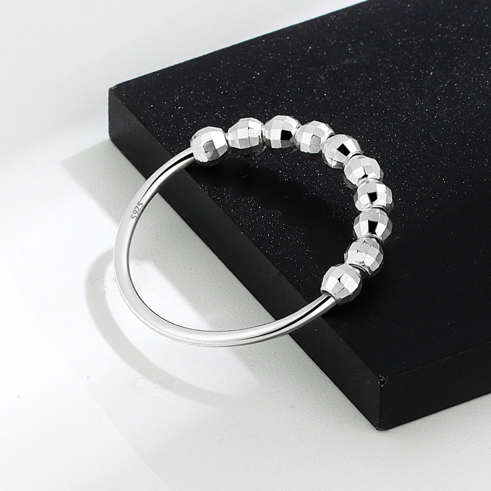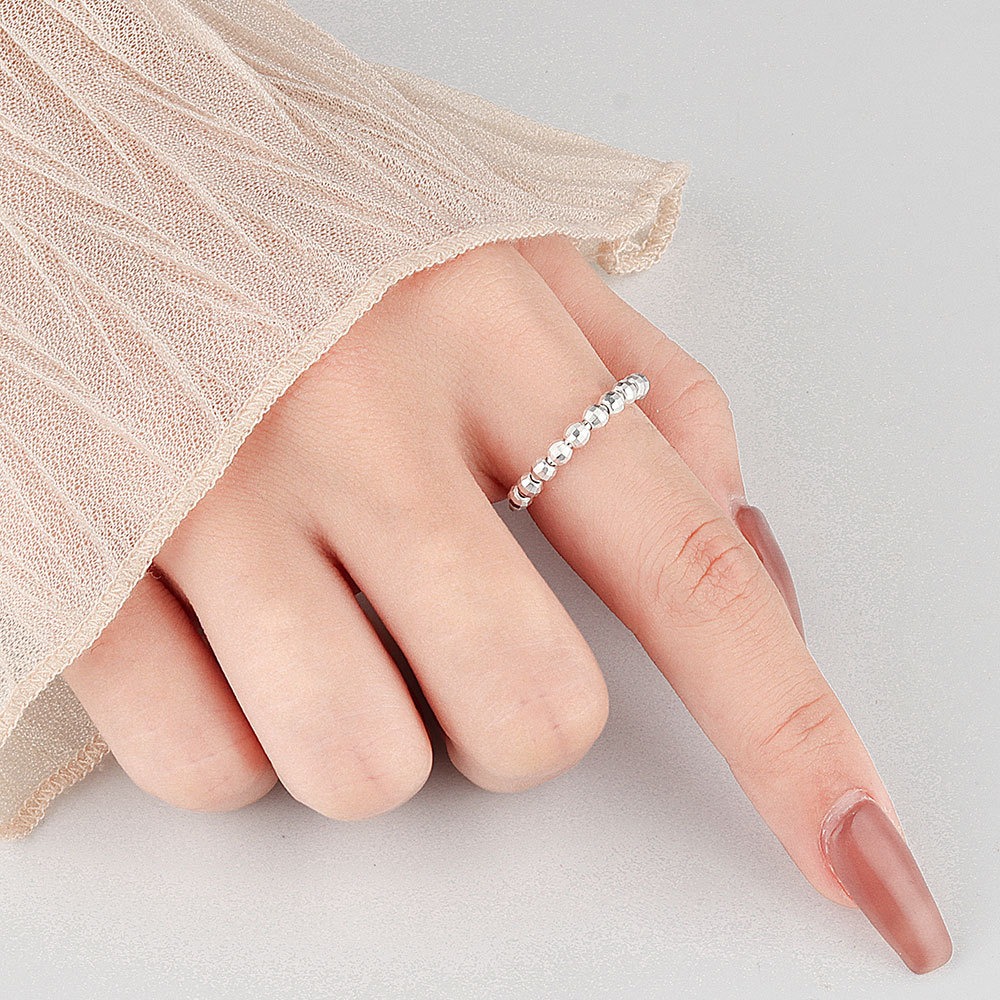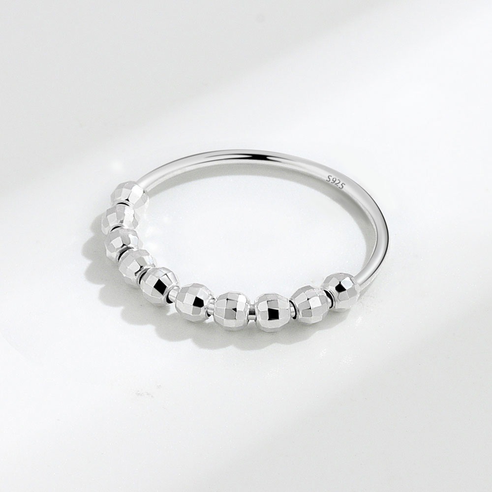 S925 sterling silver ring opening adjustable rotating beaded women’s ring