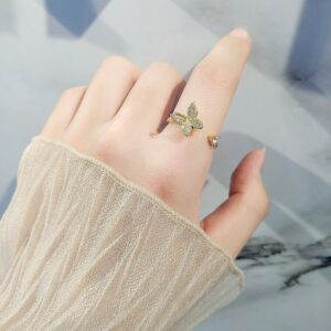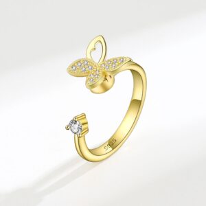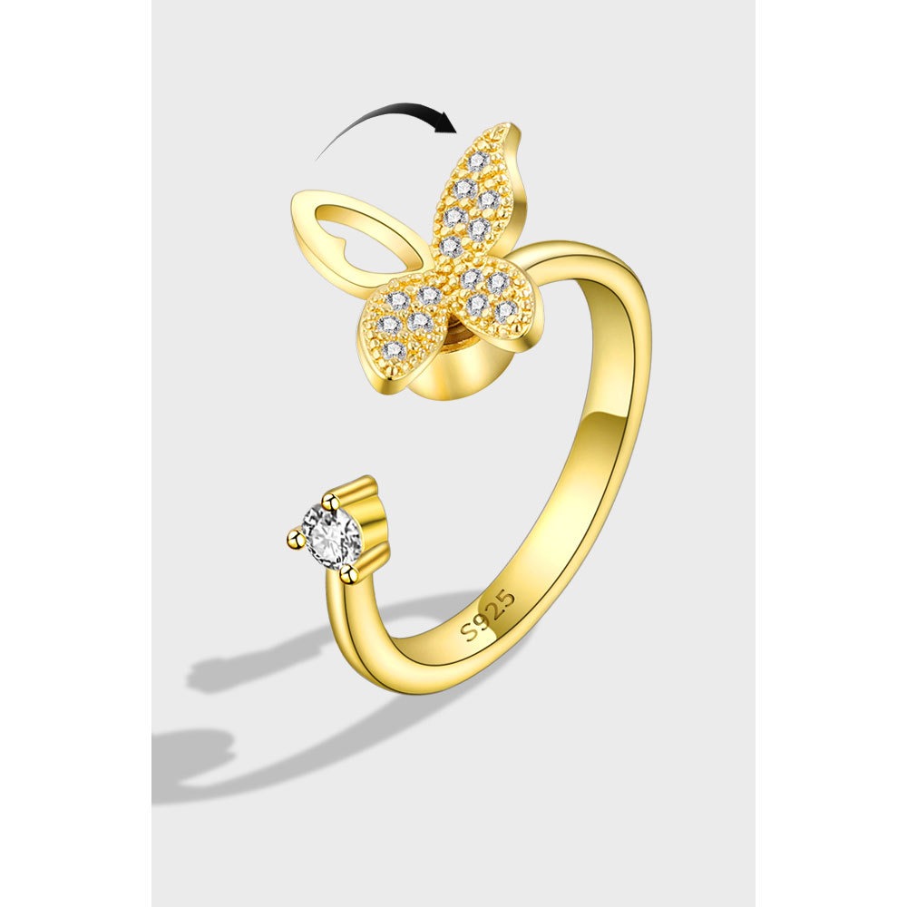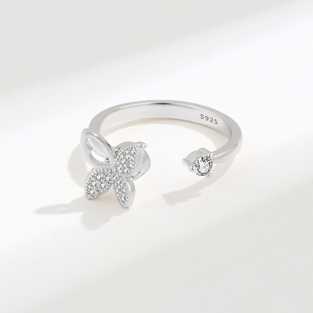 S925 sterling silver ring opening adjustable rotating butterfly ring for women