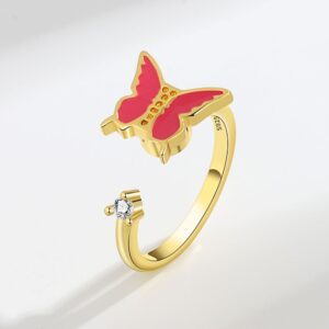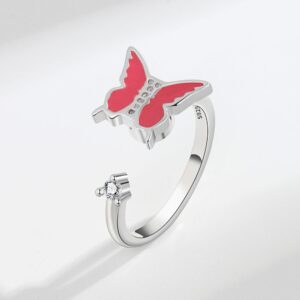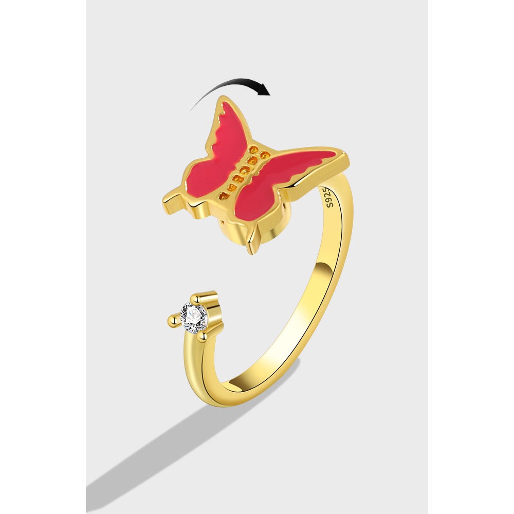 S925 sterling silver ring opening adjustable rotating butterfly ring for women