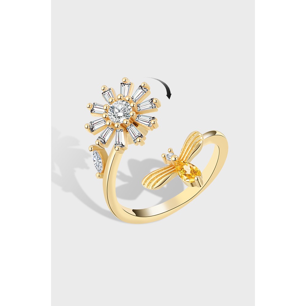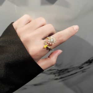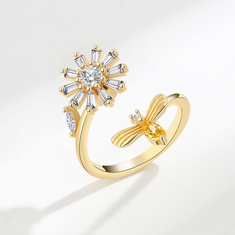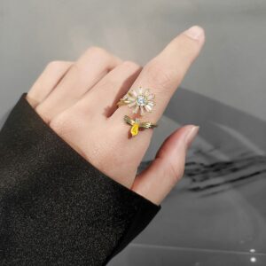 S925 sterling silver ring opening adjustable rotating daisy women’s ring