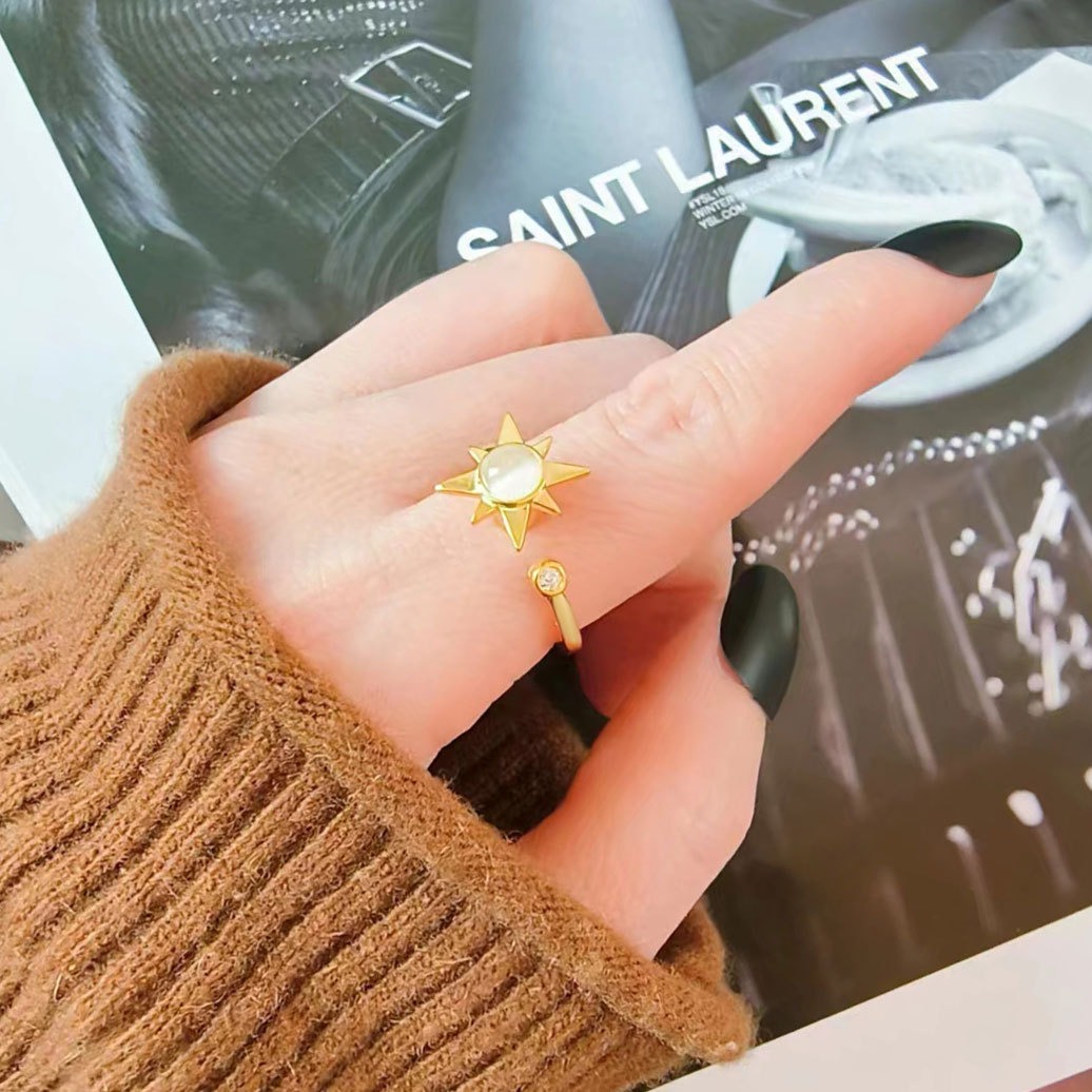 S925 sterling silver ring opening adjustable rotating eight-pointed star ring for women