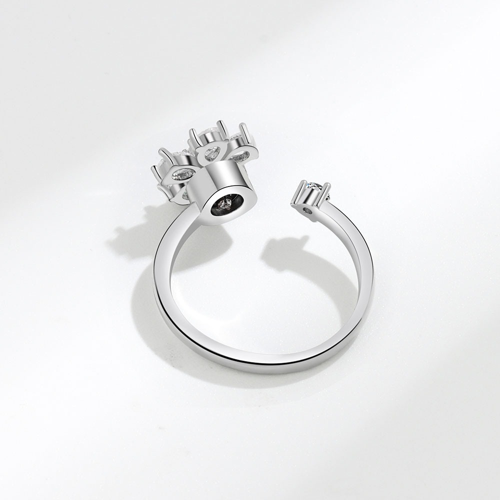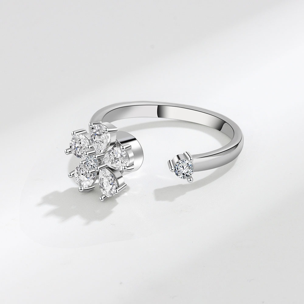 S925 Sterling Silver Ring Opening Adjustable Rotating Flower Ring for Women