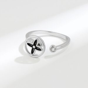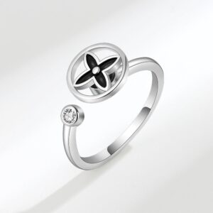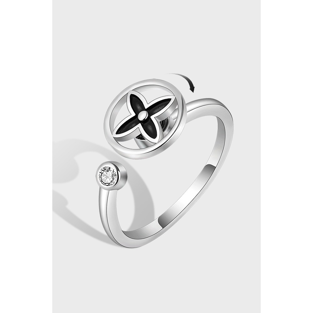 S925 sterling silver ring opening adjustable rotating four-leaf clover ring for women