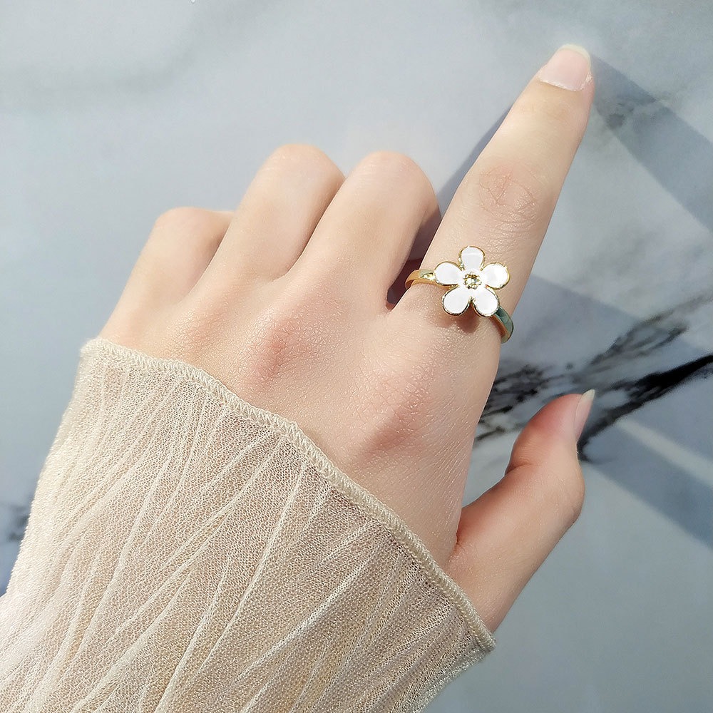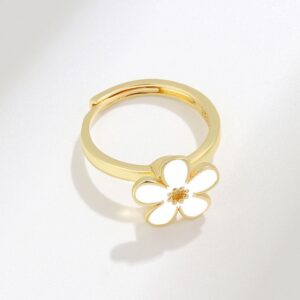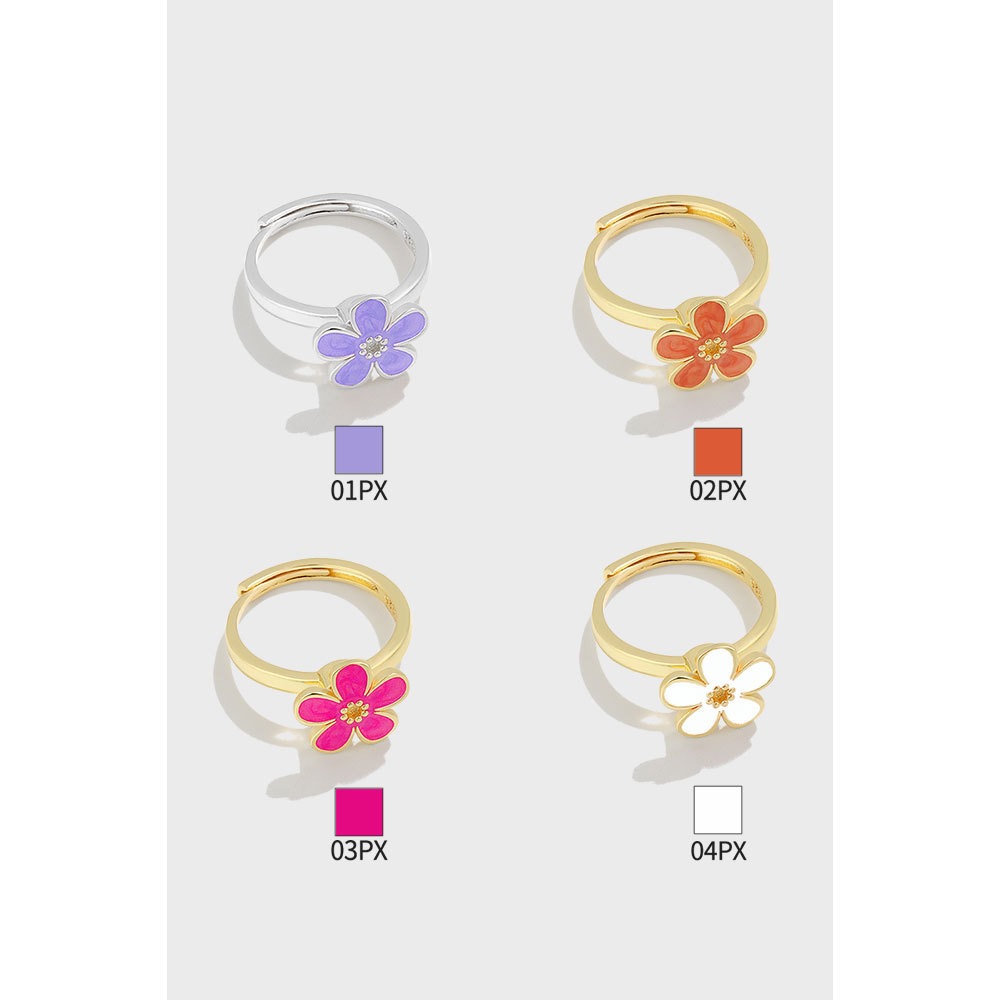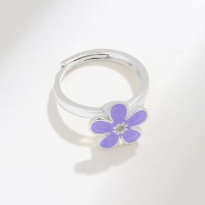 S925 Sterling Silver Ring Opening Adjustable Rotating Oil Drip Flower Ring for Women