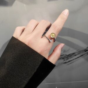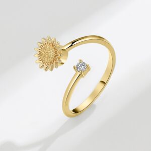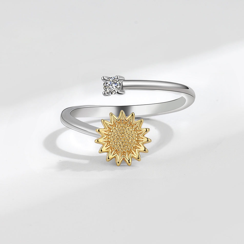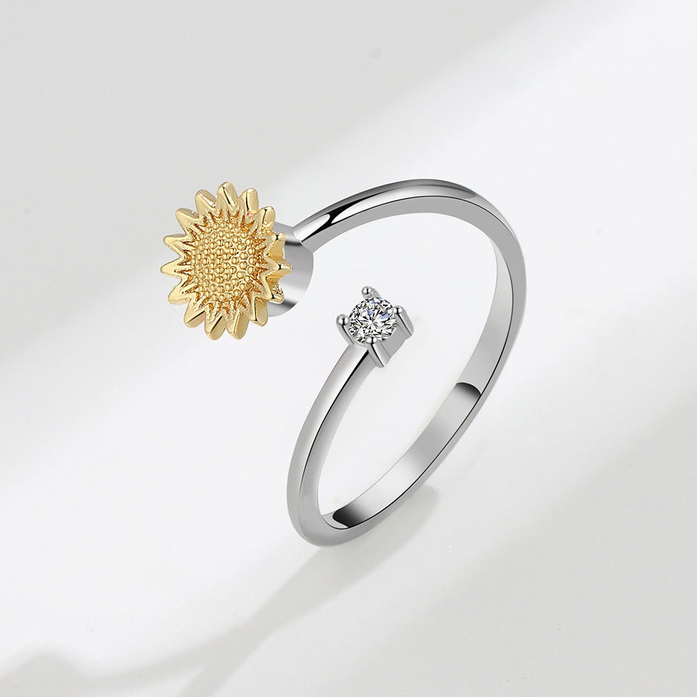 S925 Sterling Silver Ring Opening Adjustable Rotating Sunflower Ring for Women quantity