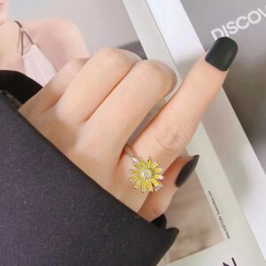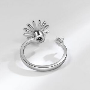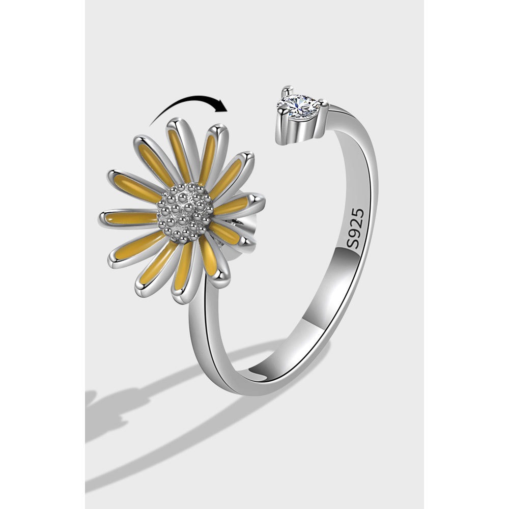 S925 sterling silver ring opening adjustable rotating sunflower ring for women