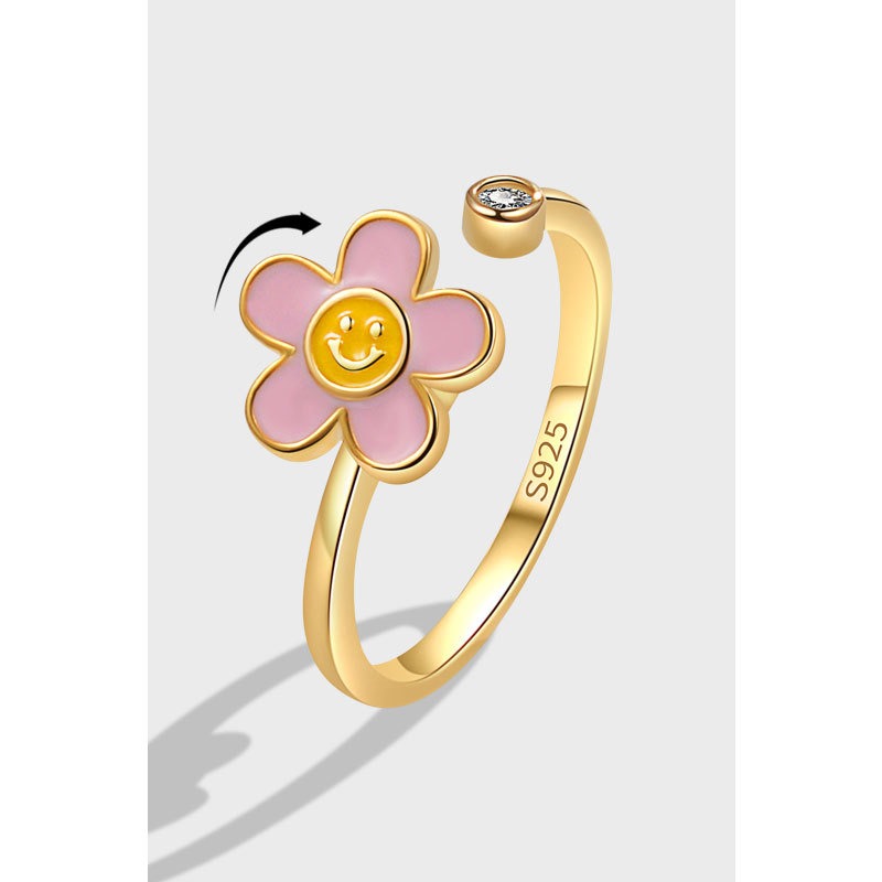 S925 Sterling Silver Ring Opening Adjustable Rotating Sunflower Ring for Women