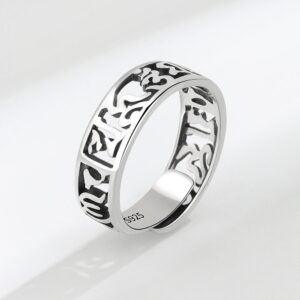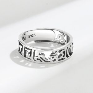 S925 sterling silver ring opening adjustable six-character mantra women’s ring