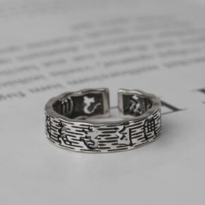 S925 sterling silver ring opening adjustable six-character mantra women’s ring