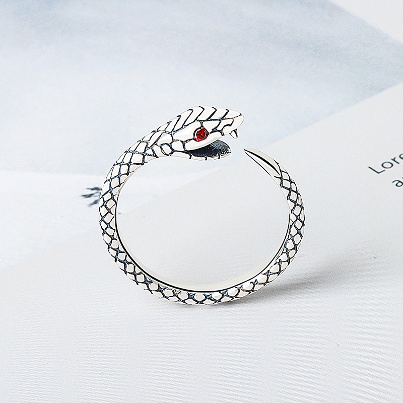 S925 Sterling Silver Ring Opening Adjustable Small Snake Ring for Women