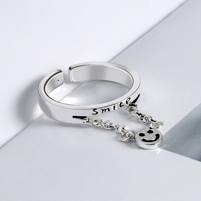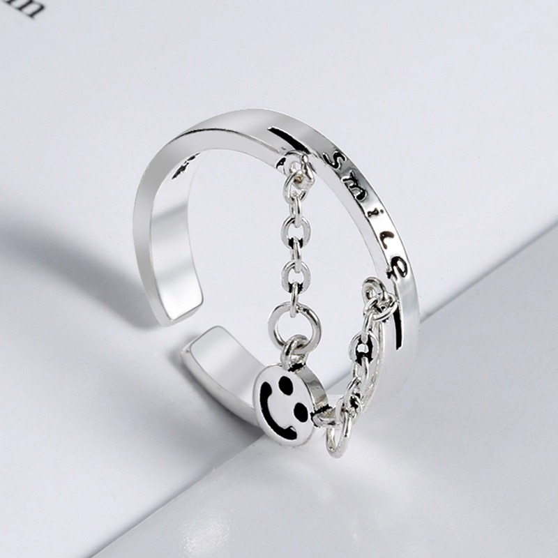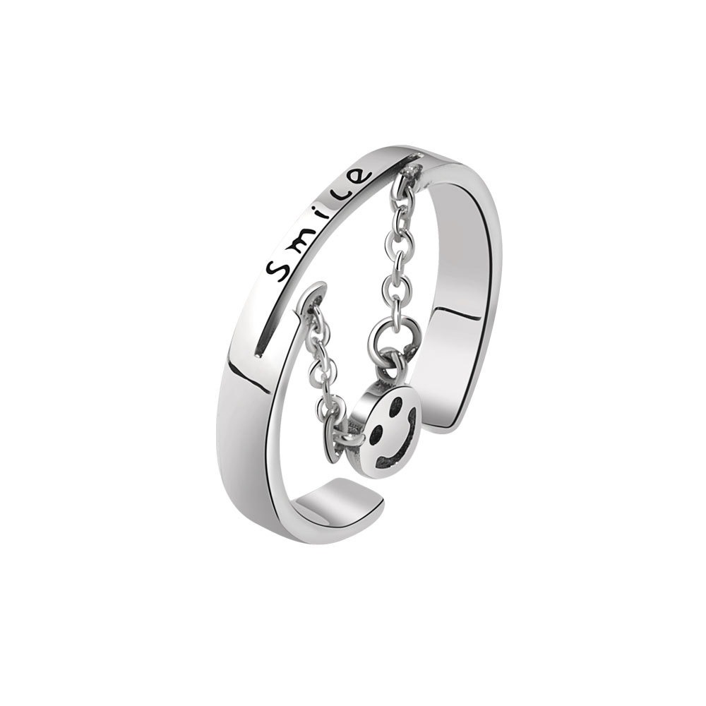 S925 sterling silver ring opening adjustable smiley face ring for women