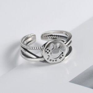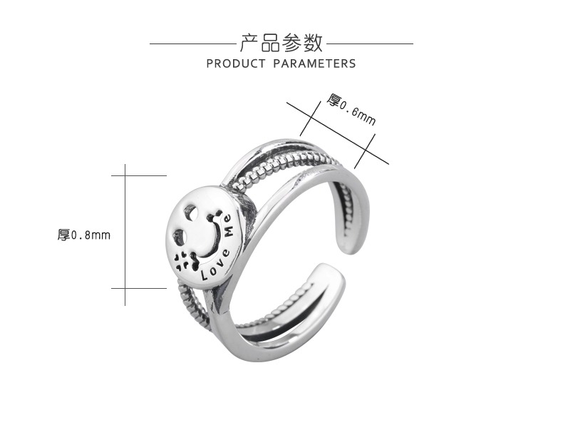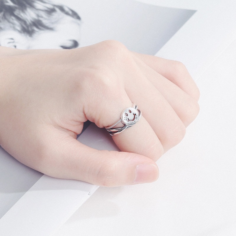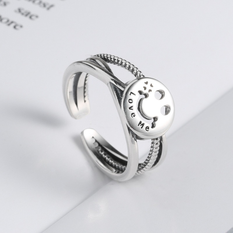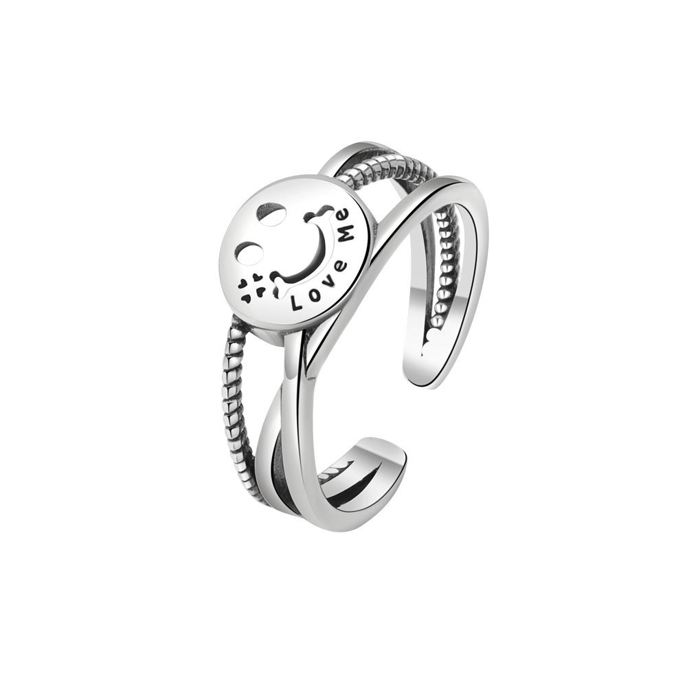 S925 sterling silver ring opening adjustable smiley face ring for women