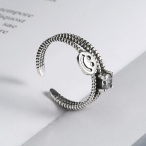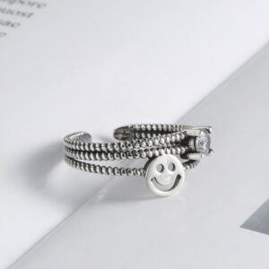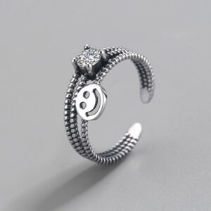 S925 sterling silver ring opening adjustable smiley face ring for women