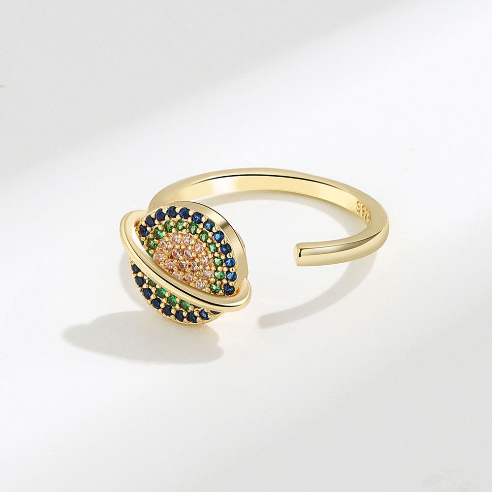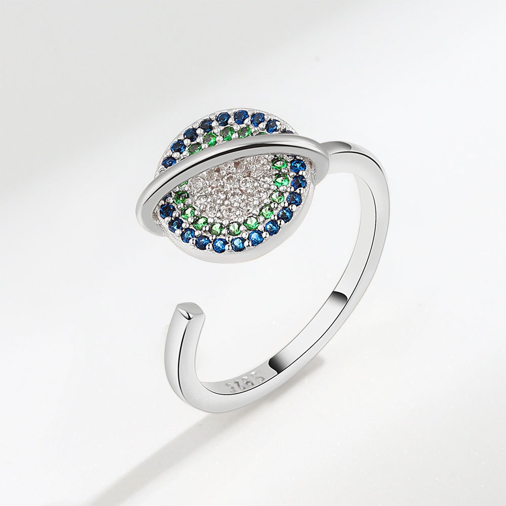 S925 Sterling Silver Ring Opening Adjustable Spin Planet Ring for Women