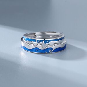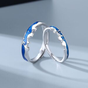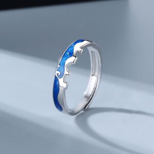 S925 sterling silver ring opening adjustable star and moon couple ring