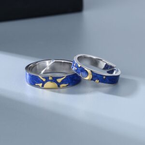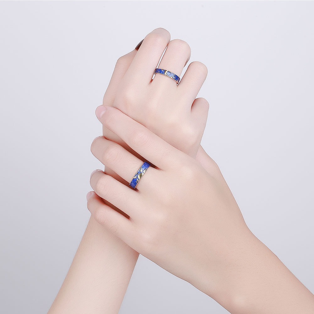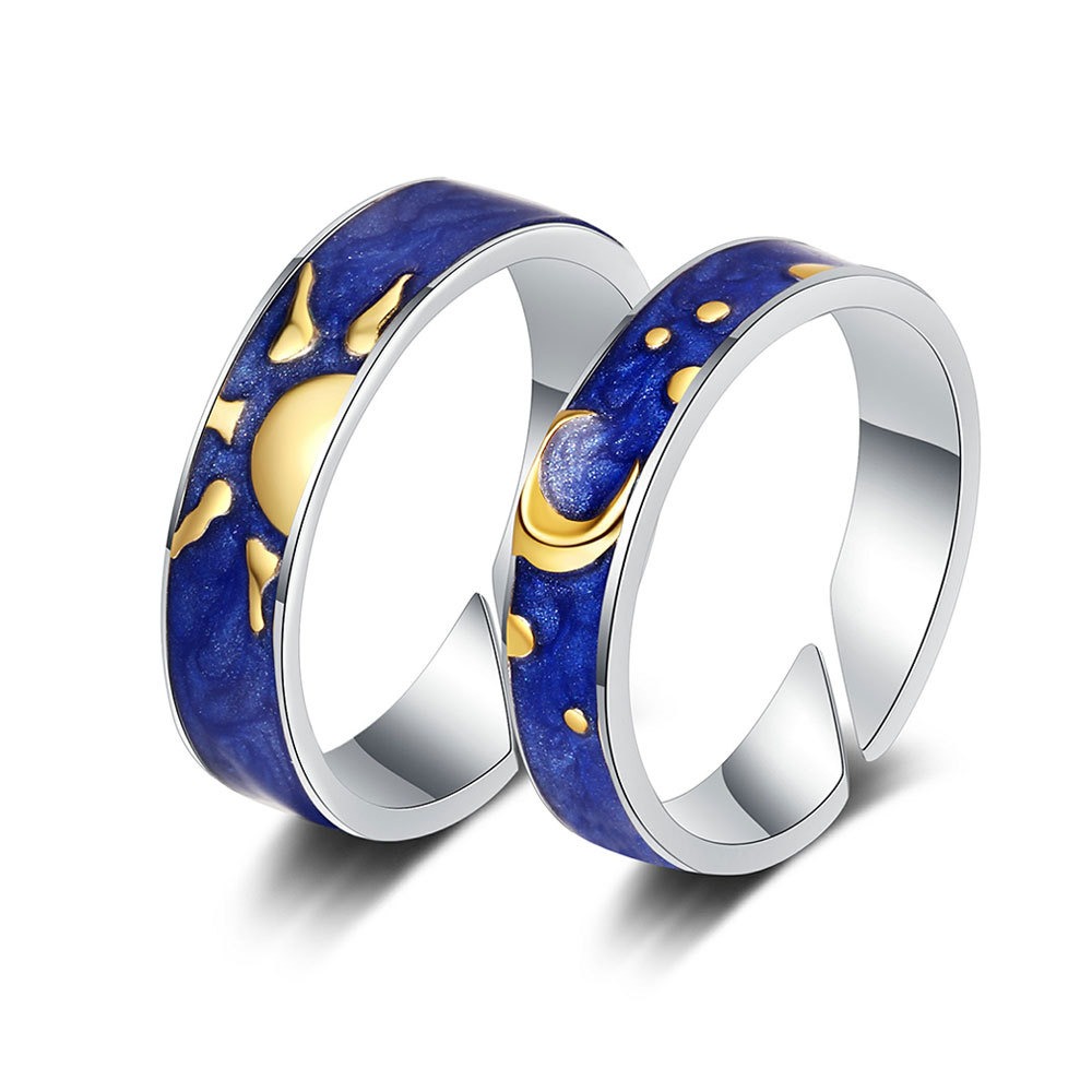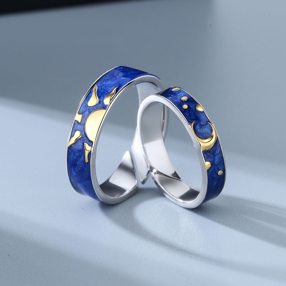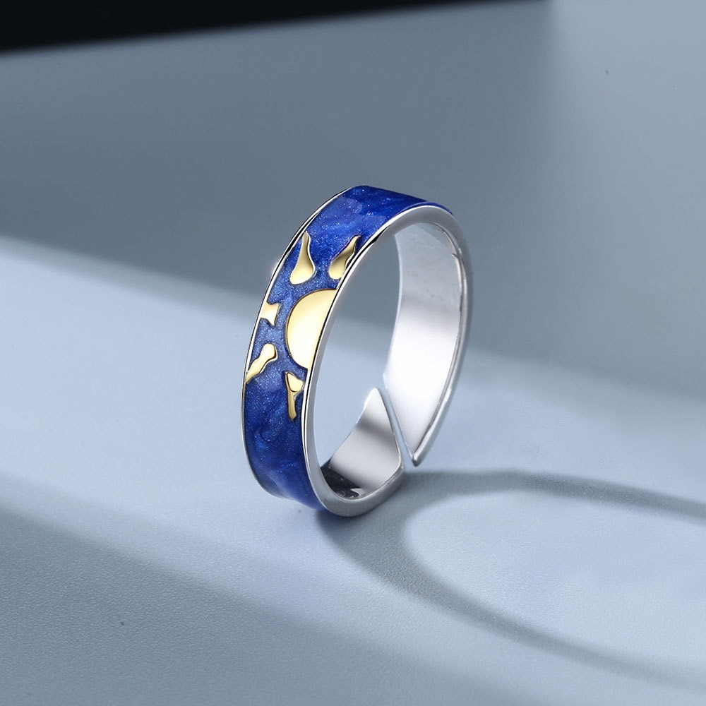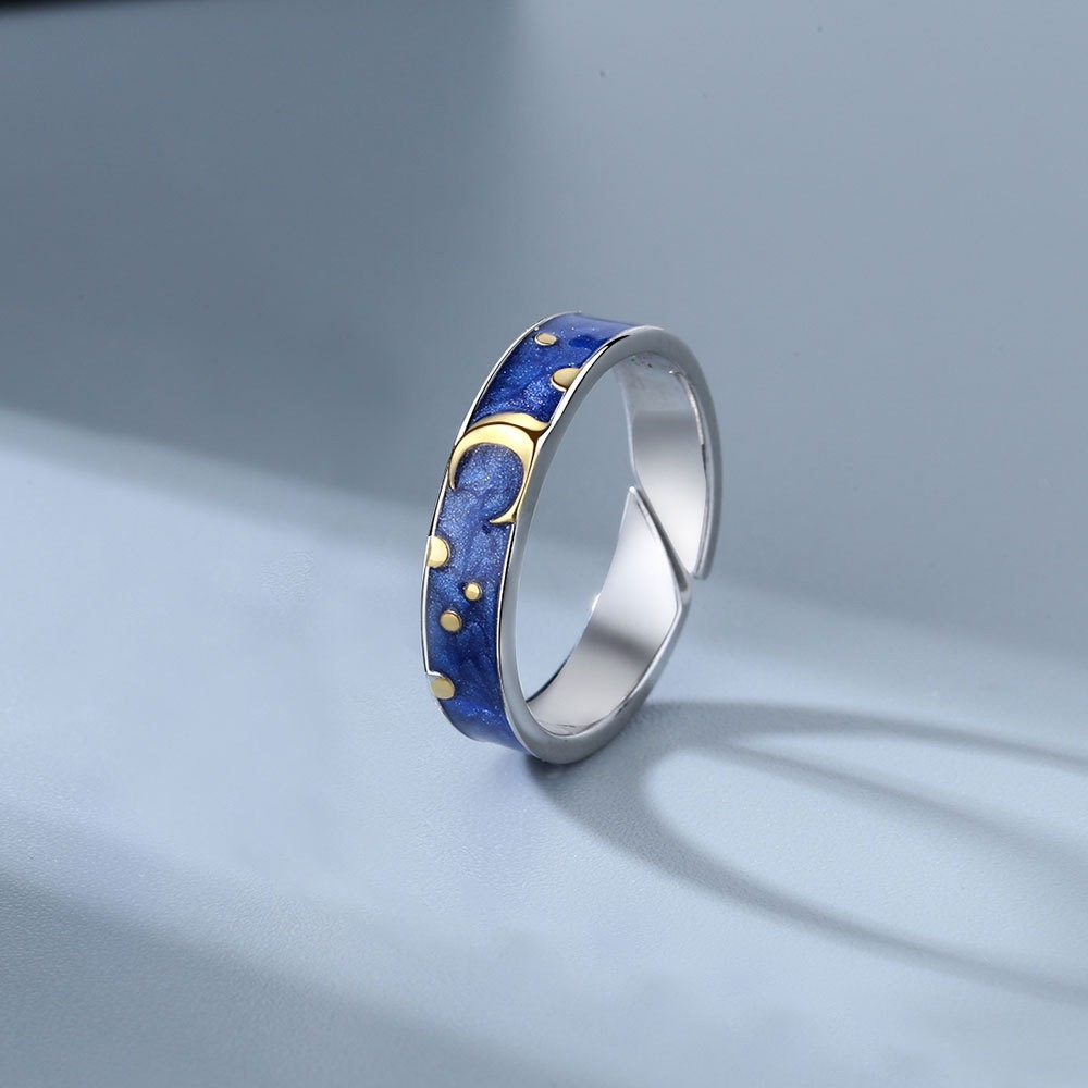 S925 sterling silver ring opening adjustable starry sky couple ring