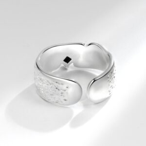 S925 Sterling Silver Ring Opening Adjustable Tin Foil Texture Ladies Ring