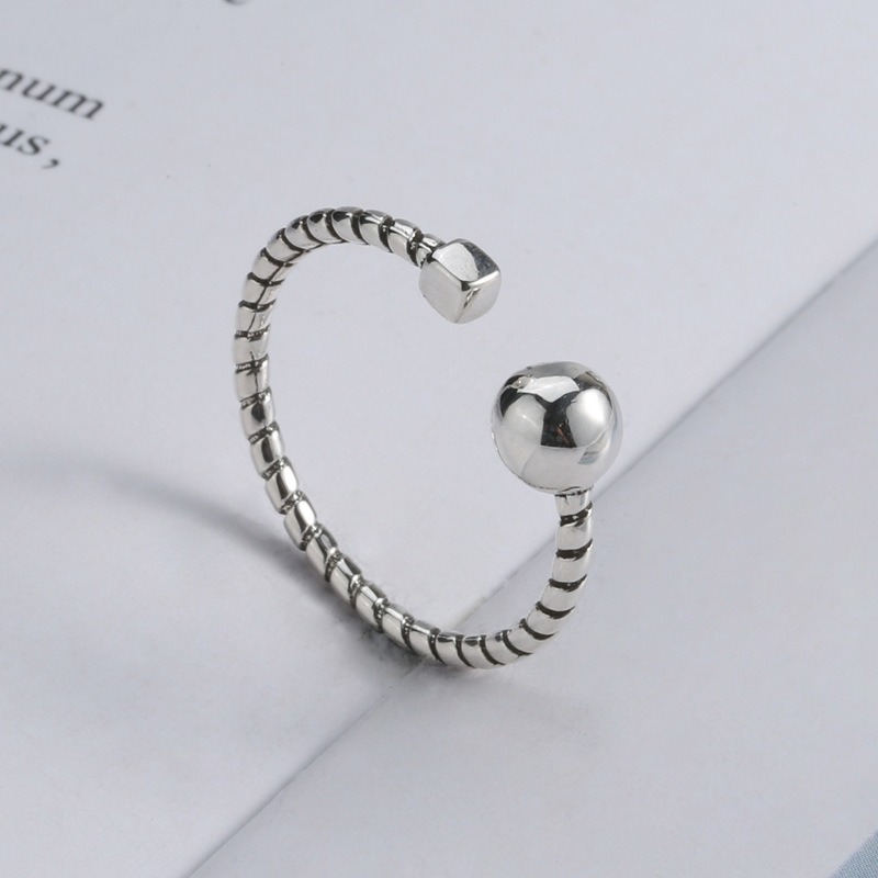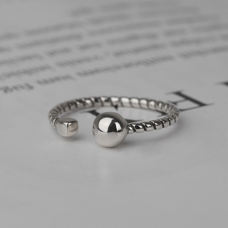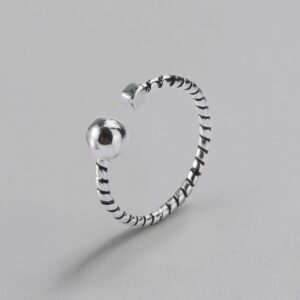 S925 sterling silver ring opening adjustable twist bead women’s ring