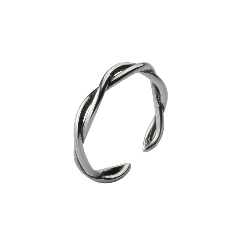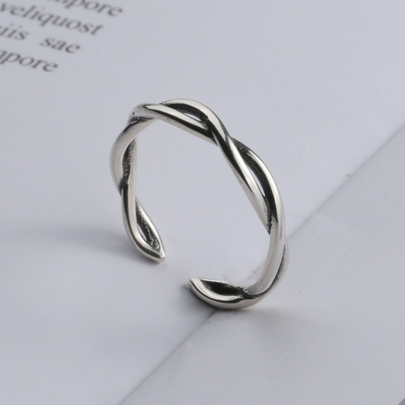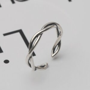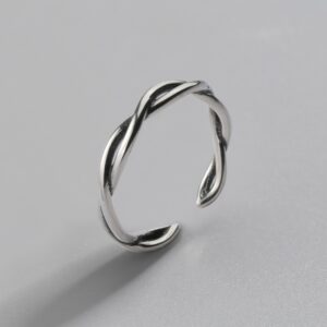 S925 sterling silver ring opening adjustable twist ring for women