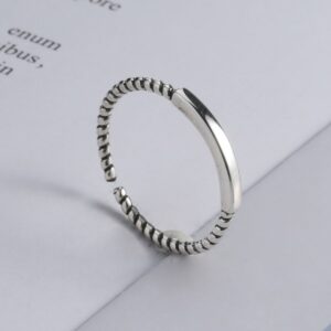 S925 sterling silver ring opening adjustable twist stripe women’s ring