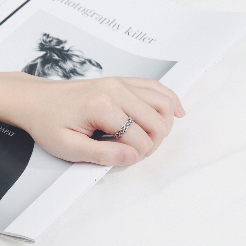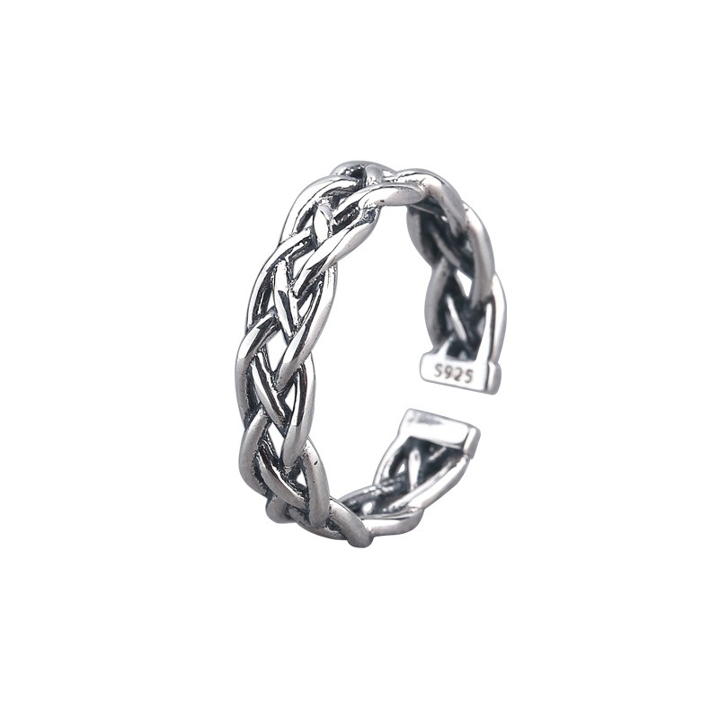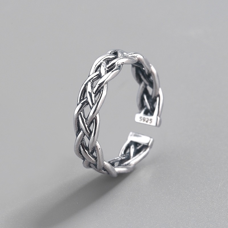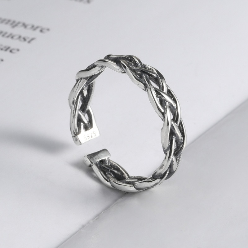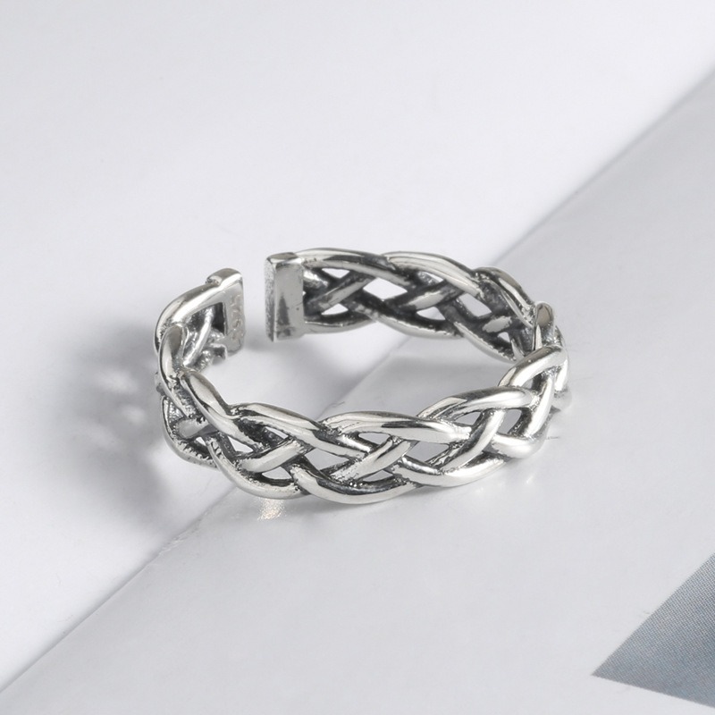 S925 sterling silver ring opening adjustable twist weave women’s ring