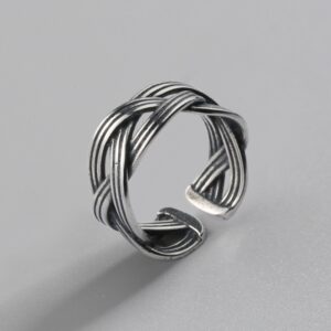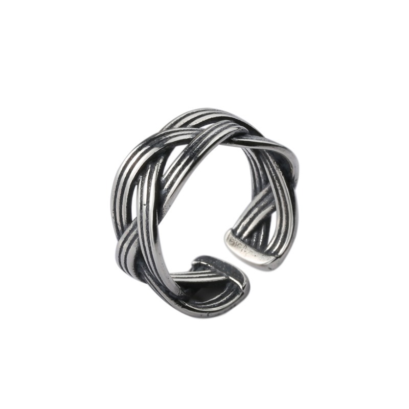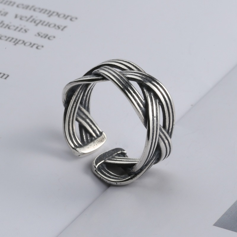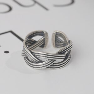S925 sterling silver ring opening adjustable wavy pattern women’s ring